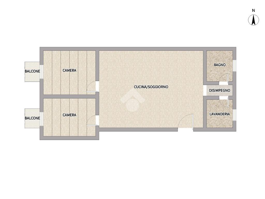 L'immobile è ubicato al PIANO ed è composto da ingresso in open space cucina/soggiorno, una camera da letto ed una cameretta entrambe con accesso al balcone e con affaccio su Via Lungo Ponte ed infine dal bagno e dalla lavanderia con entrambe punto luce la finestra.