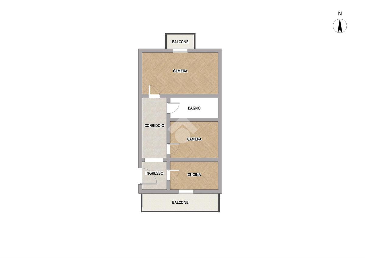 L'immobile si sviluppa su una metratura di circa 65 mq ed è composto da ingresso in disimpegno dal quale è possibile accedere alla cucina con affaccio interno condominio, soggiorno, camera da letto con affaccio su strada principale mediante balcone ed infine il bagno.