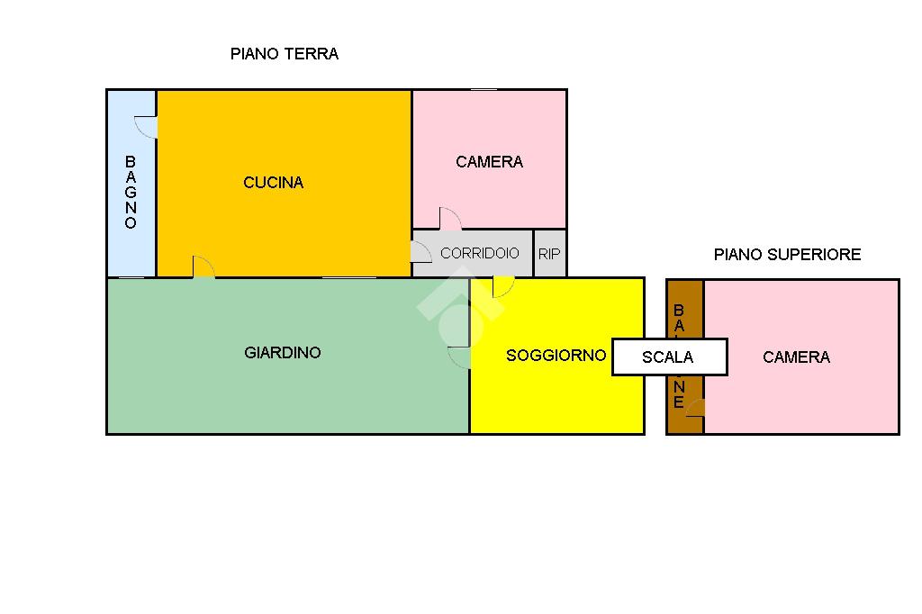 -piano terra: ingresso direttamente in cucina, bagno finestrato, cameretta e ampio salone luminoso.
