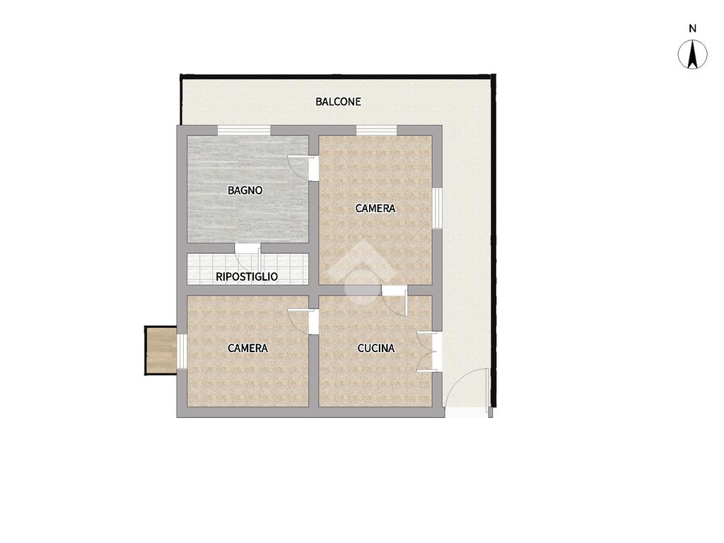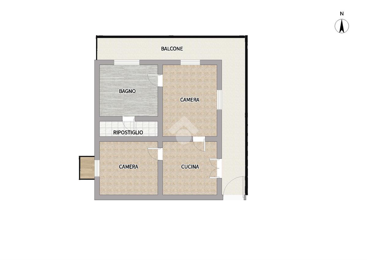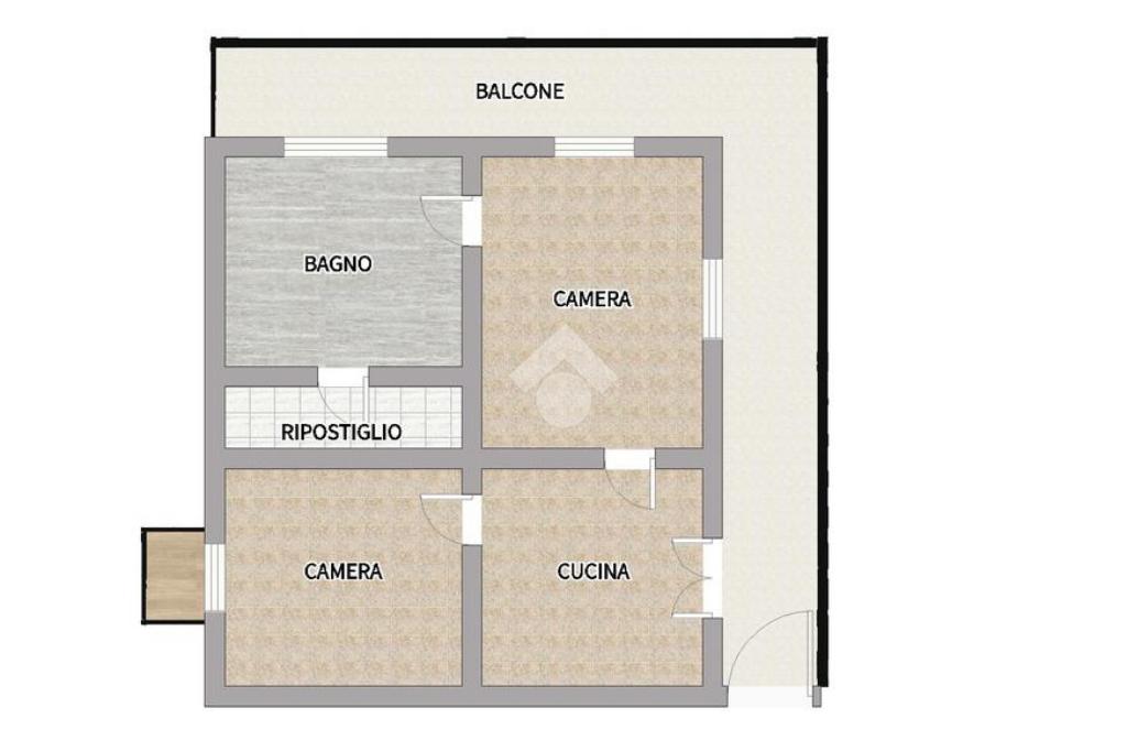 L'immobile, di circa 70mq, è caratterizzato da possibile accesso privato e da un ampio balcone angolare sul quale affacciano tutti gli ambienti principali, rendendo l'appartamento particolarmente arioso e luminoso.