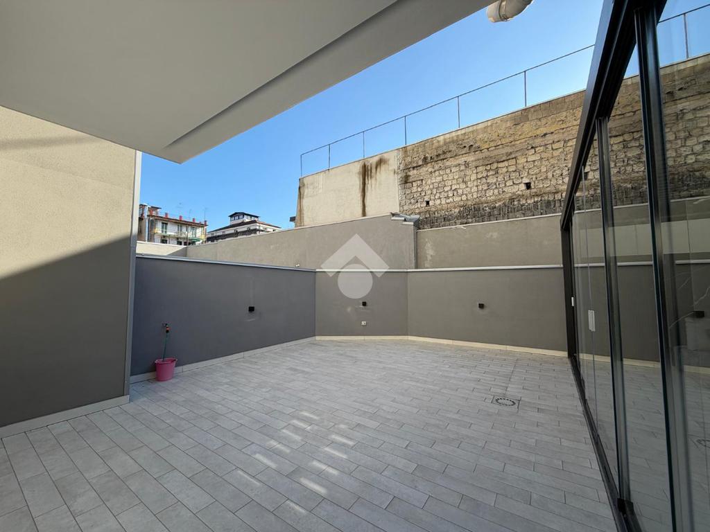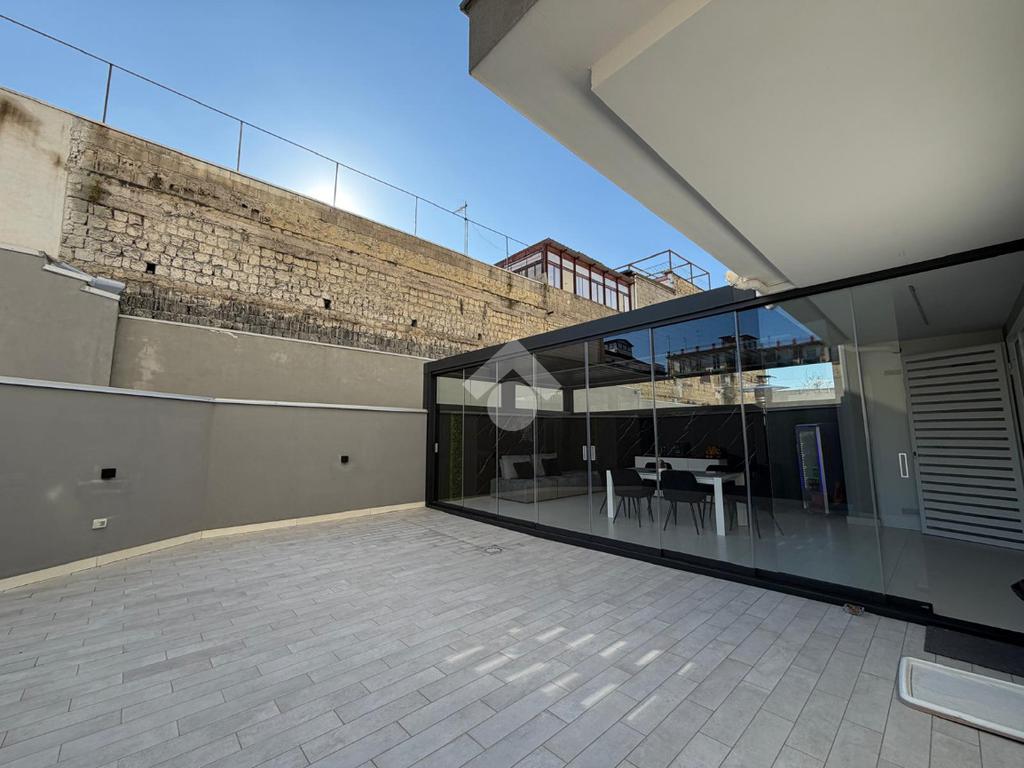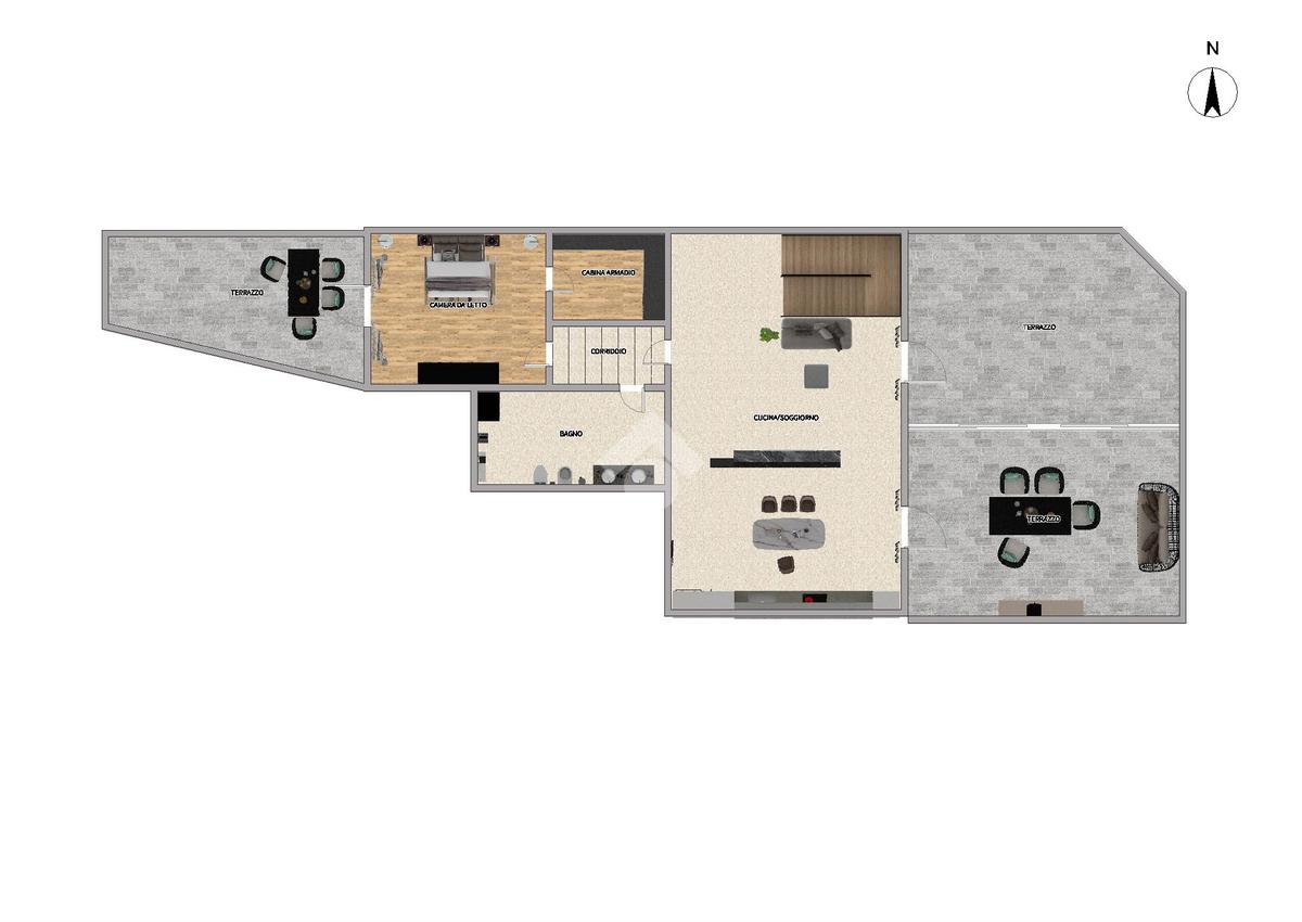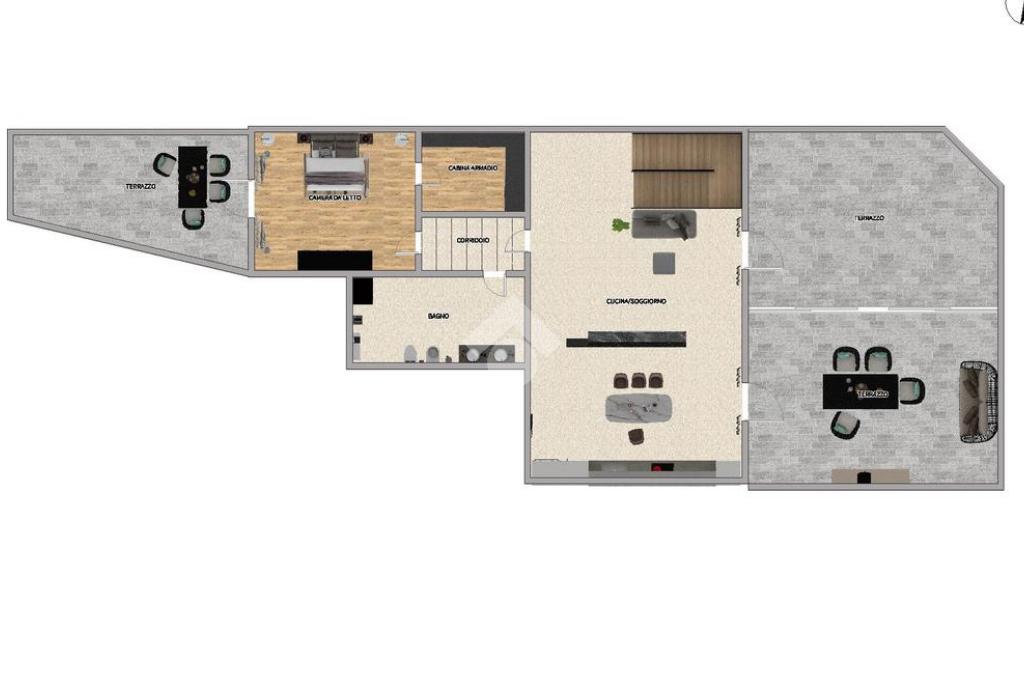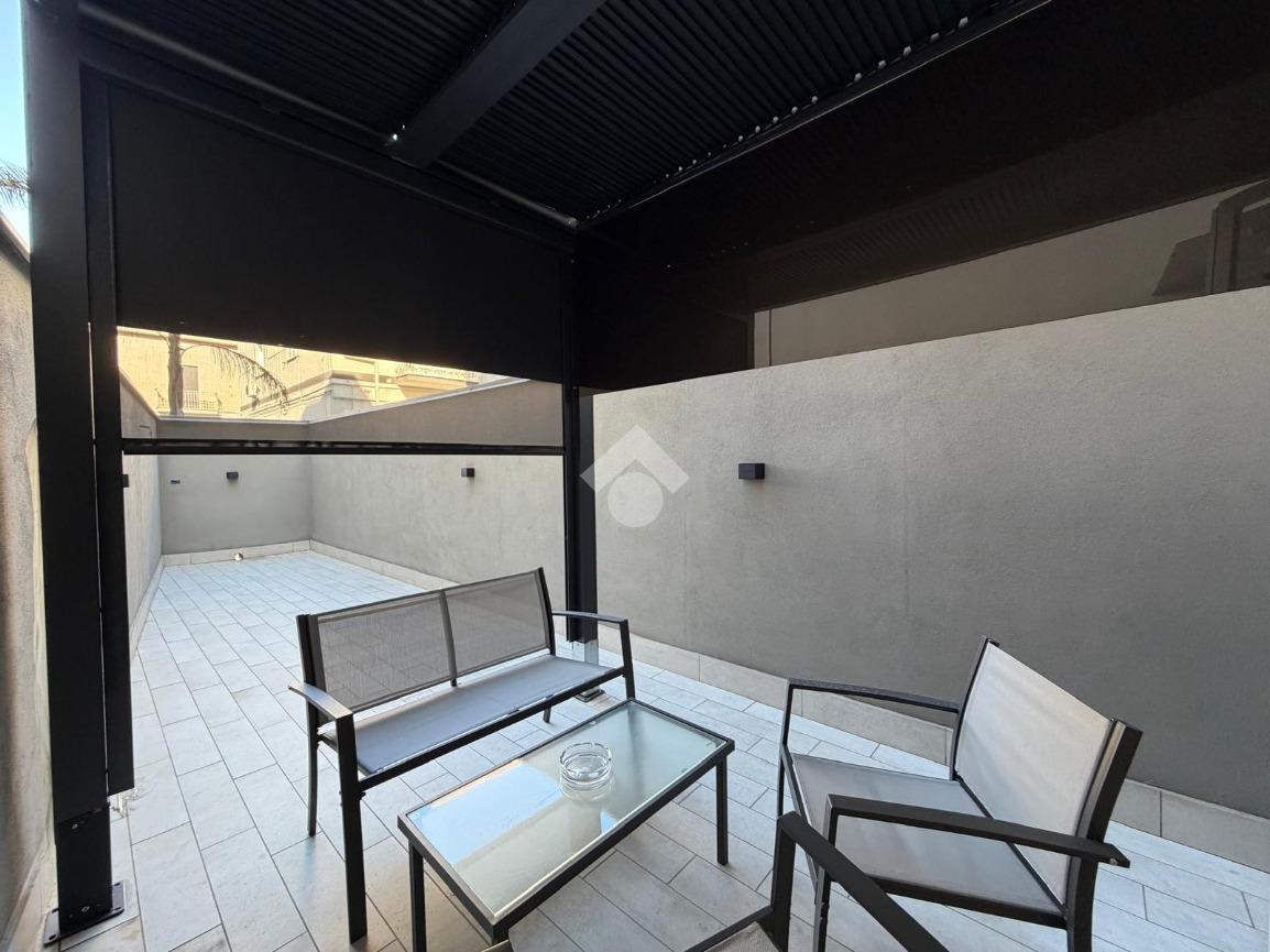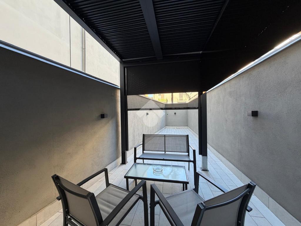L’ingresso si apre su una ampia zona giorno open space, ben organizzata tra area living e zona pranzo, con accesso diretto al terrazzo a livello, vero punto di forza dell’abitazione. Il terrazzo è dotato di copertura scorrevole, che consente di vivere lo spazio esterno in ogni stagione.