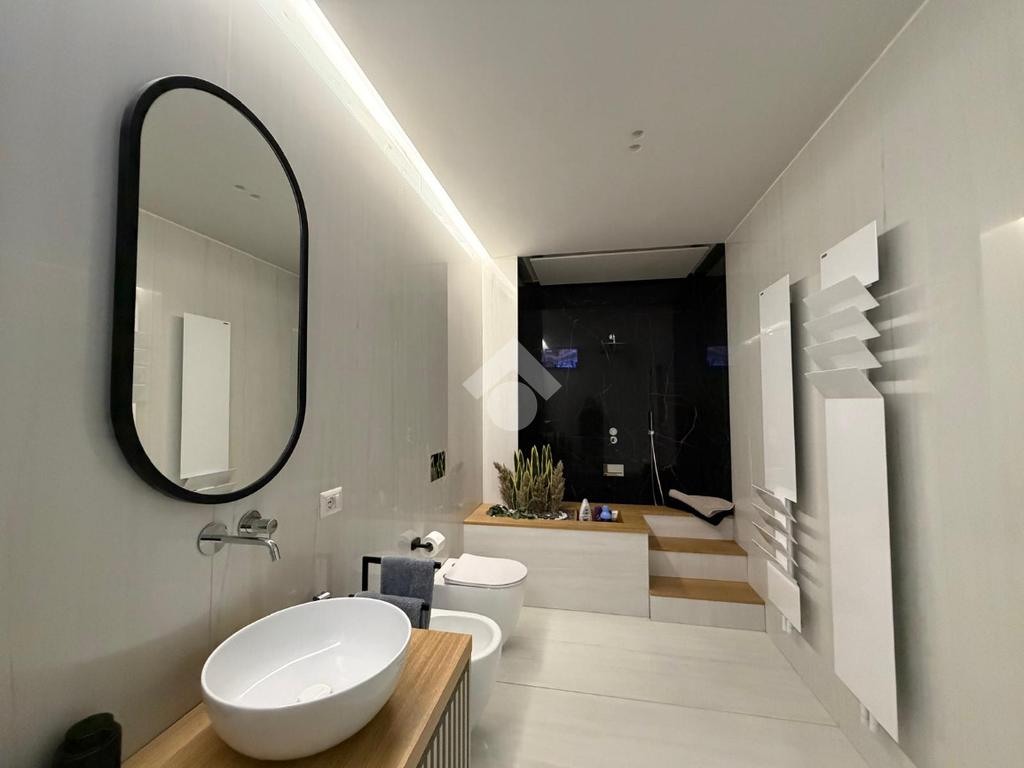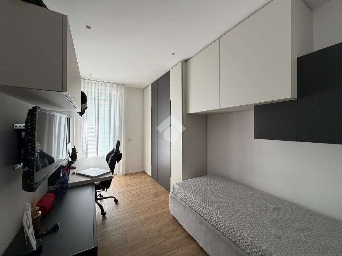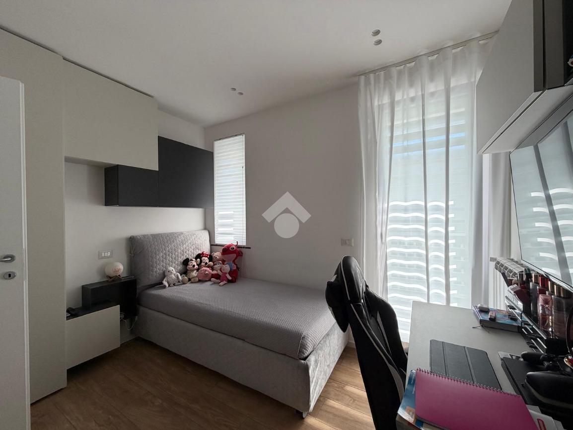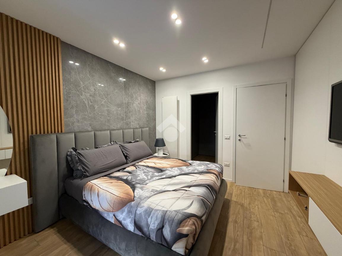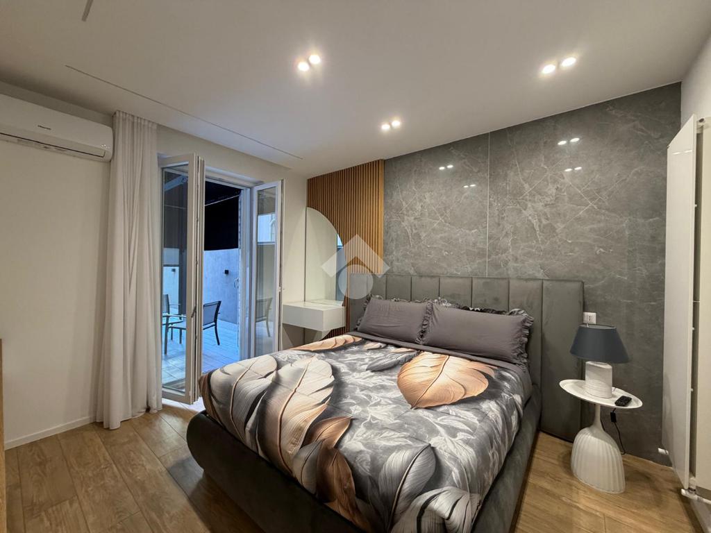 Sempre al piano rialzato si sviluppa la zona notte principale, composta da una camera da letto matrimoniale con cabina armadio e con accesso ad un secondo terrazzo, e da un bagno finestrato, rifinito con materiali moderni.