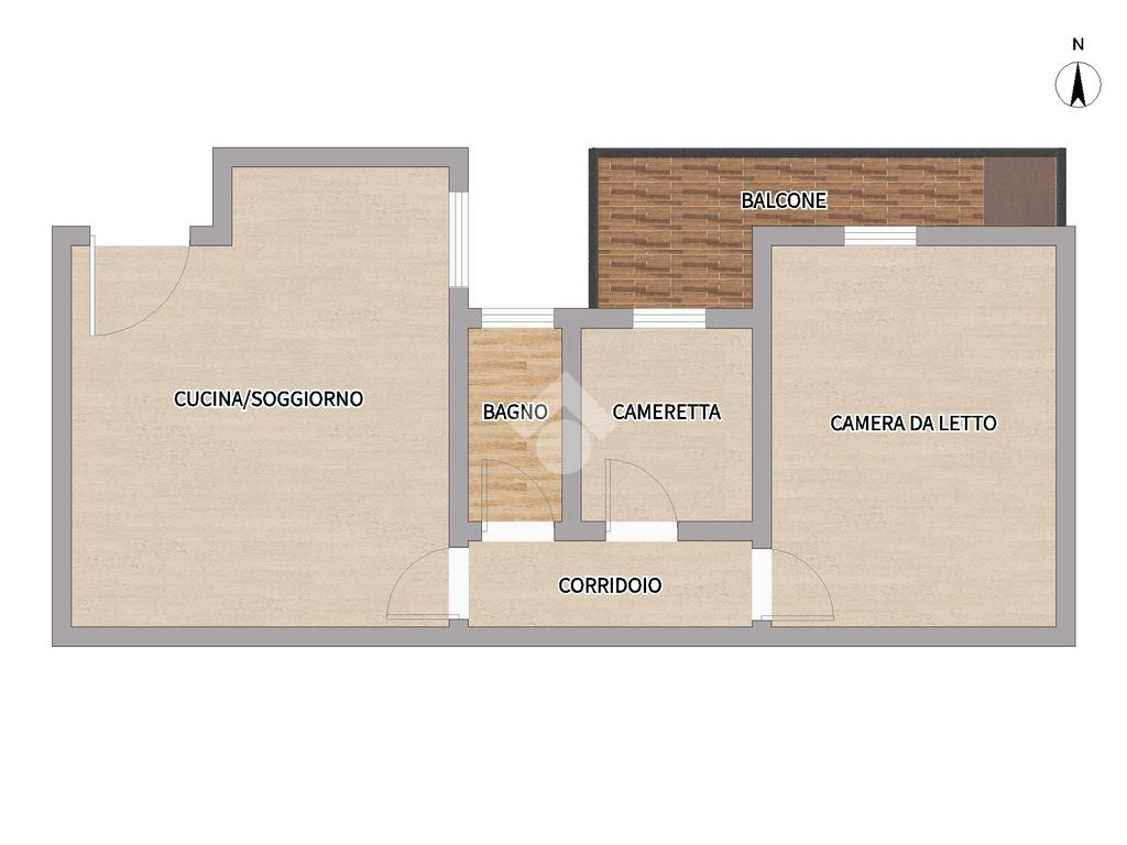 L’immobile, di circa 75mq, si distingue per la funzionale distribuzione degli ambienti ed è composto da ingresso in accogliente cucina living open space, dal corridoio che ci conduce alla zona notte, composta da cameretta e camera da letto matrimoniale, entrambe con accesso al balcone interno, che garantisce buona luminosità e riservatezza.